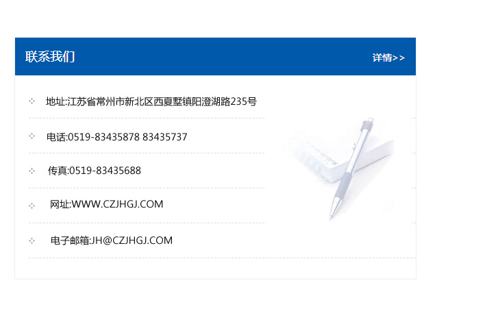 傳真:0519-83435688    郵編:213135    網址:WWW.czjhgj_com.cn-fenghao.com    電子郵箱:JH@czjhgj_com.cn-fenghao.com